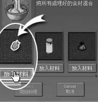 料理方法是選擇混合之後,把準備的材料從材料窗按照順序一個個放入。